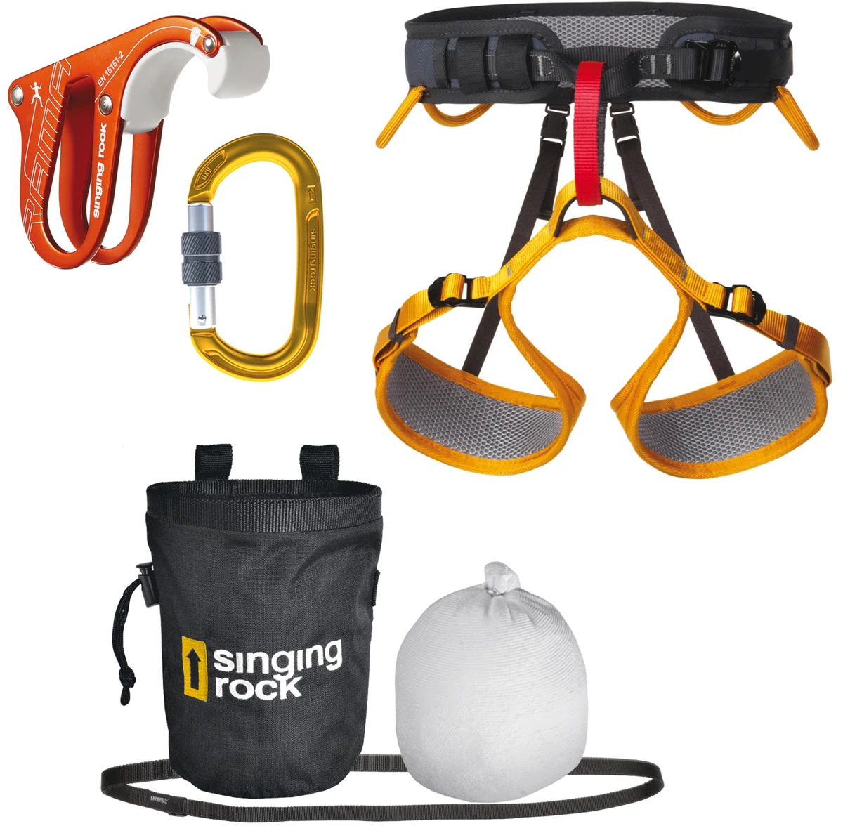 Singing Rock Packet Gym je zvýhodněný lezecký set pro začátečníky i rekreační lezce, kteří chtějí mít v jednom balení sedák, jistítko s karabinou a základní výbavu na magnézium. Hodí se na umělé stěny i na sportovní lezení v přírodě.