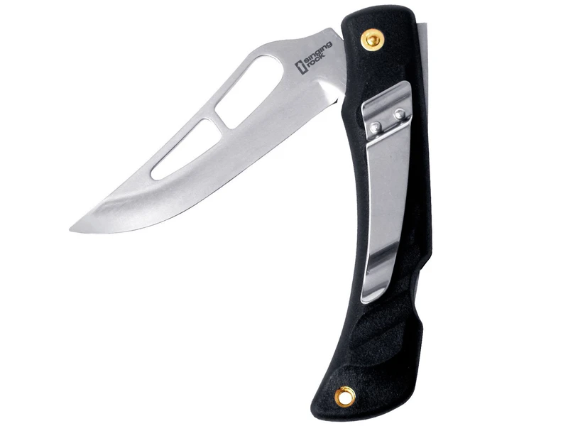 Singing Rock Pracovní nůž: s klipem na upevnění na kalhoty nebo opasek. Je vyrobený z nerezové oceli. Jde otevřít i jednou rukou. Nůž je opatřen pojistkou proti zavření. Je naprosto bezúdržbový.