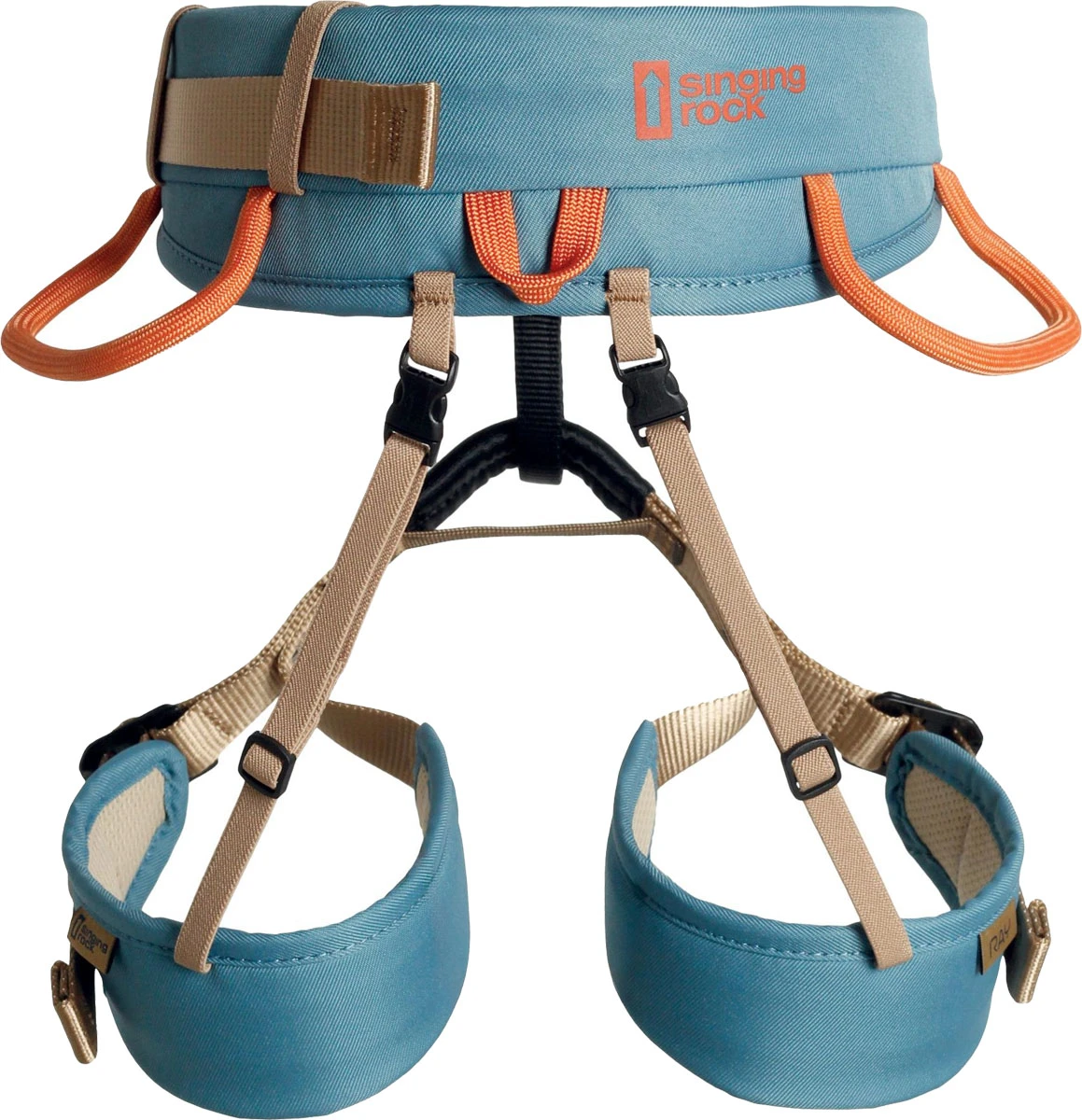 3 ocelové Singing Rock double spony na pase a nohavičkách umožní ideální nastavení úvazku pro jakoukoliv lezeckou aktivitu