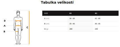 Nosný prvek je centrální pás, který je možné snadno přenastavit tak, aby navazovací oko bylo v ose těla. Má dvě poutka na materiál.