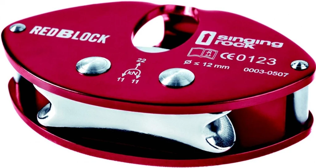 Singing Rock Redblock: je ideální pro časté lezení top rope. Omezuje tření lana o skálu a má mnohem větší poloměr ohybu než při lezení přes karabiny a zvyšuje mnohonásobně životnost lana.