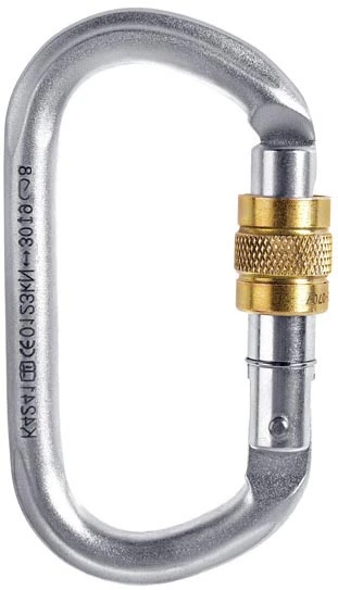 Singing Rock Ovál ocel šroubovací : pevná a velmi odolná ocelová karabina se šroubovací pojistkou. Má certifikát pro práci ve výškách. Oproti duralovým karabinám vyniká odolností a životností při pádu na zem nebo při odírání o beton, zeď…, ale i například při spouštění skrz karabinu.