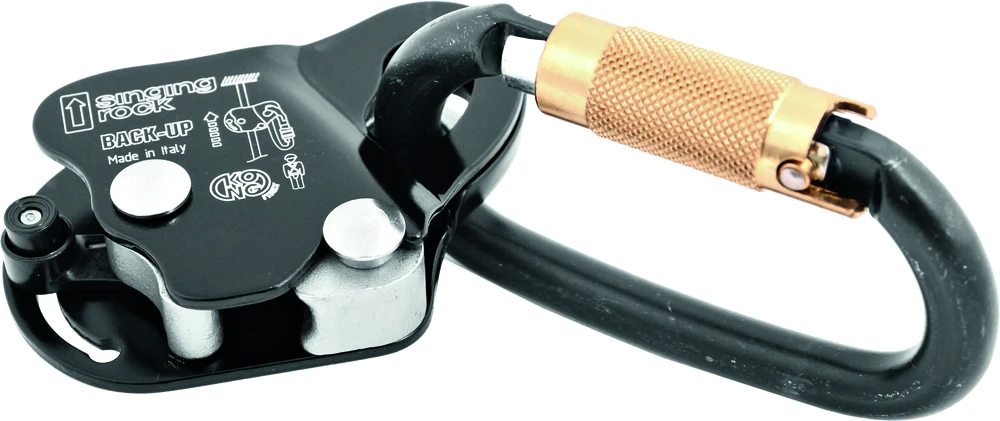 Singing Rock Back-up : je určený pro pracovní využití kdy vás má za ukol zachytit v případě pádu. Lze snadno připevnit na lano. Je možné ho využít i s tlumičem pádů. V dodávce zachycovače pádu je i karabina. Jde použít i pro polohování.