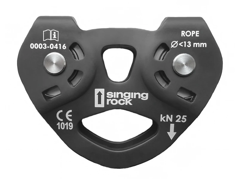 Tato tandemová kladka má rolny z nerezové oceli, díky tomu je možné použít ocelové i polyamidové statické lano. Výhodou jsou kuličková ložiska, která dávají kladce dobrou účinnost a při přejezdech stabilní rychlost.