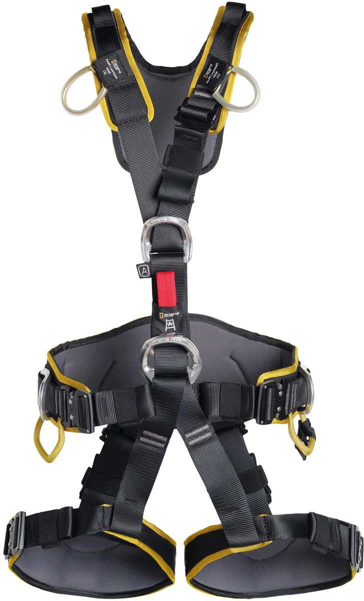 postroj je vybaven klasickým předním a zadním bodem pro zachycení pádu dle normy EN 361; zadní bod je zapuštěn do polstrování, zbytečně nepřekáží ve stísněných prostorech