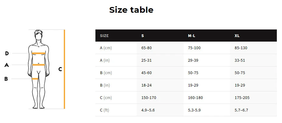 polstrované nohavičky a polstrovaná ramena rovnoměrně rozkládají hmotnost uživatele a snižují tak zátěž a únavu