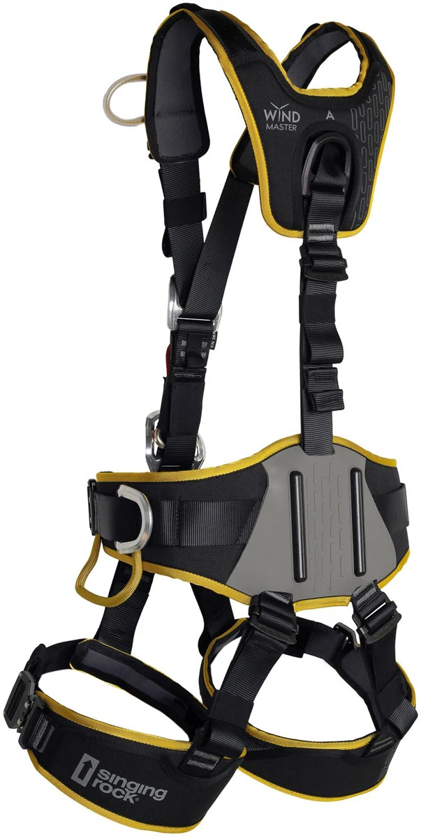 Singing Rock Wind Master : je celotělový pracovní postroj určený pro práci ve větrných elektrárnách a stísněných prostorech. Má v přední části klasický kovový A připojovací bod a navíc textilní pro připojení "žehliček" na jistící lano (který se v případě pádu vytrhne do polohy A bodu).