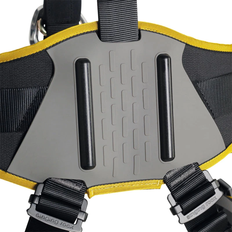 široký bederní pás se zadním plastovým krytem, na kterém jsou umístěny odolné kluzáky, zajištuje komfortní pohyb i odpočinek na záchytných systémech i ve stísněných prostorech