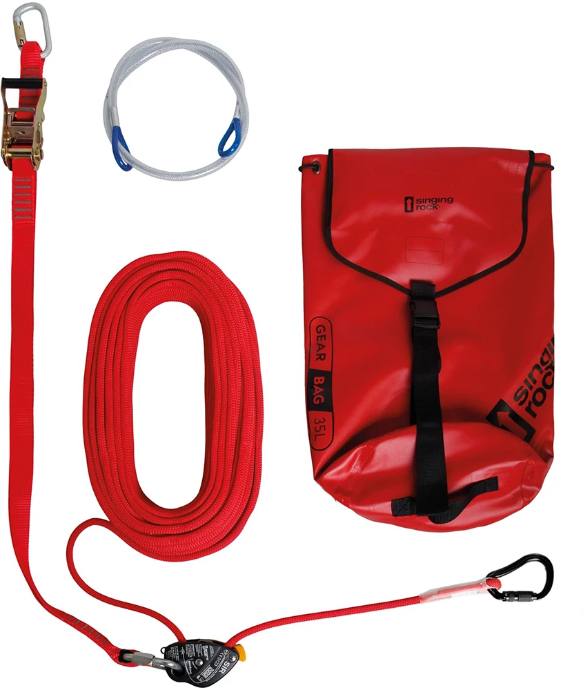 Singing Rock Záchranný set 30 m: je určený pro spuštění zraněného pracovníka dolů na zem.