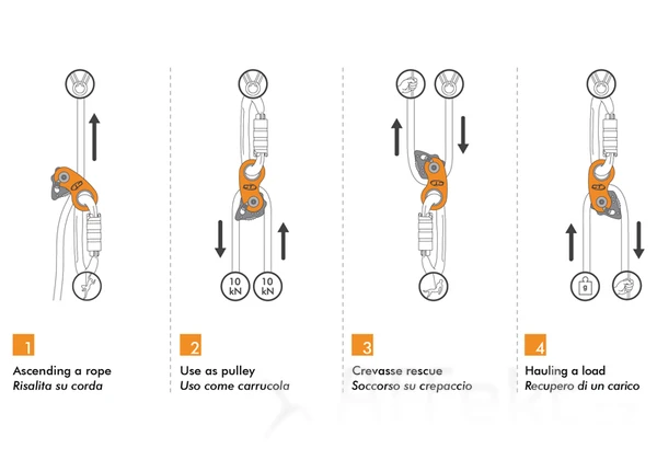 Slouží ke konstrukci kladkostrojů a k výstupu po laně, vytahování z trhlin nebo při vytahování břemen. Můžete ji tedy použít pro svoji záchranu nebo záchranu parťáka, který spadl do ledovcové trhliny