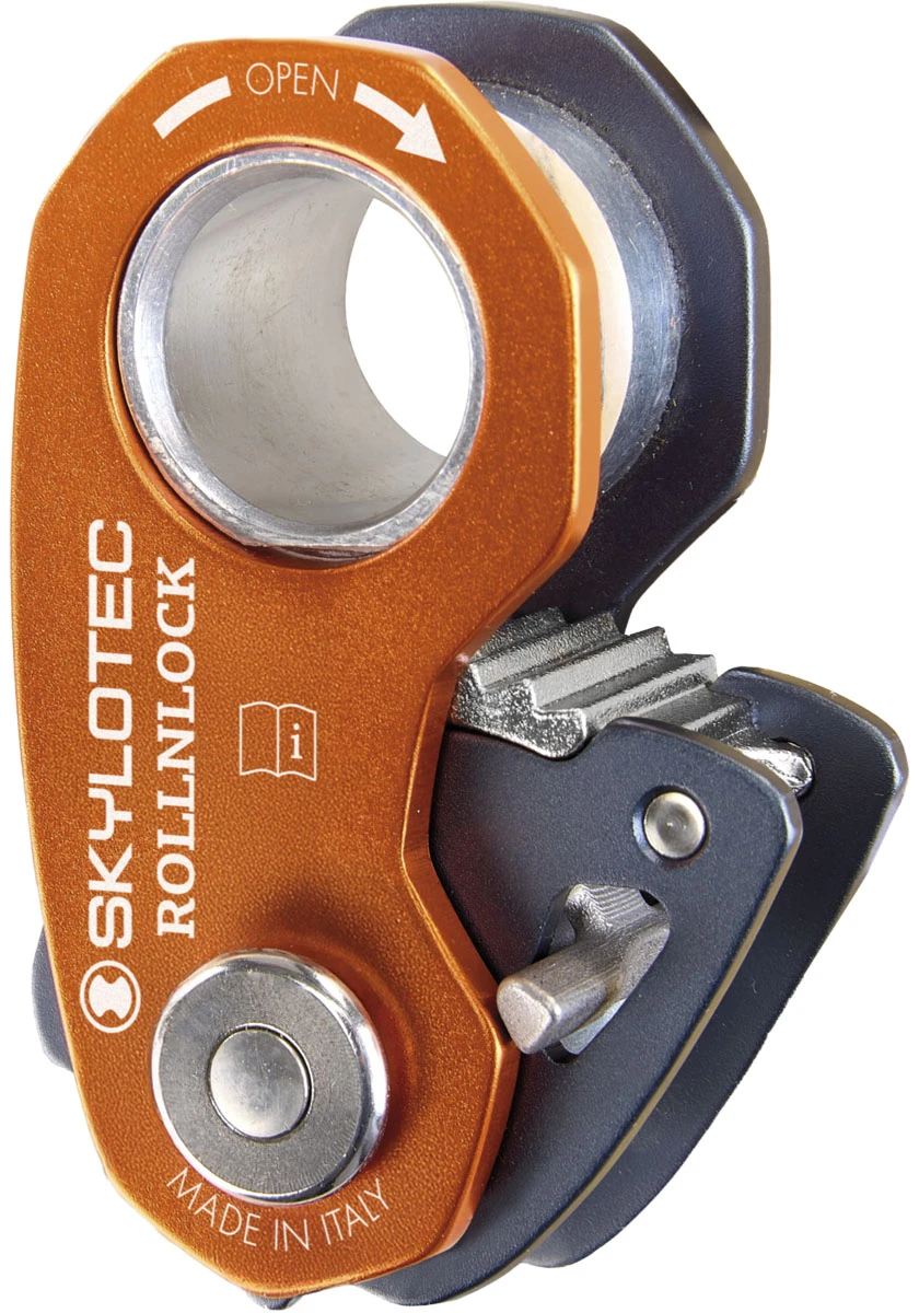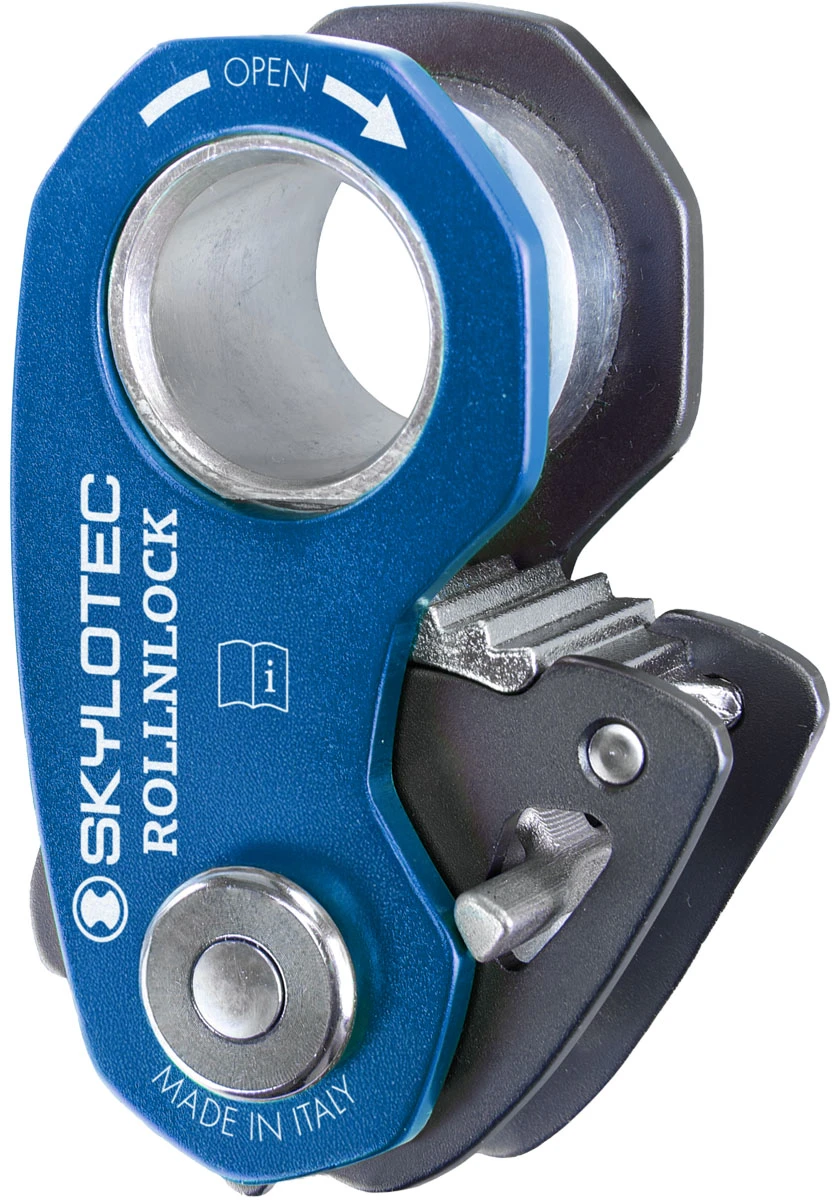Skylotec RollNLock: je speciální kladka pro širokou škálu využití v přírodě. Má několik funkcí. Je to kompaktní lanová kladka s kluzným ložiskem s blokantem, který je šetrný k lanu. Lze ji použít s lanem i s plochou smyčkou.
