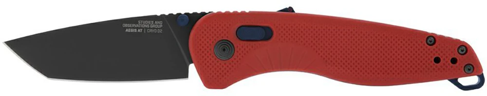 Sog Aegis AT - Tanto - Rescue Red & Indigo – je malý kapesní nůž s čepelí ve tvaru tanto. Je vhodný pro využití ve městě i v přírodě. Je zajímavý pro bushcraft, kemping, ale můžete ho nosit i každý den sebou do práce.