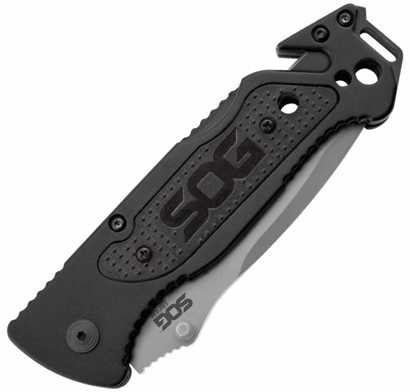 Sog Escape Bead Blasted – je univerzální zavírací nůž pro hasiče, záchranáře, horskou službu nebo i pro vás. Má střední velikost, proto ho můžete nosit kamkoliv sebou aniž by vás omezoval.
