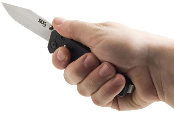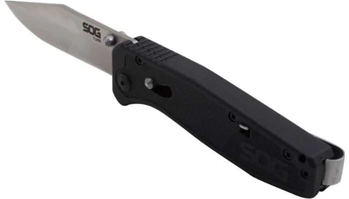 Čepel má hladké ostří z nerezové oceli 8Cr13MoV. Má spolehlivou pojistku proti nechtěnému zavření SOG Assisted Technology. Má čep na otvírání jednou rukoul.