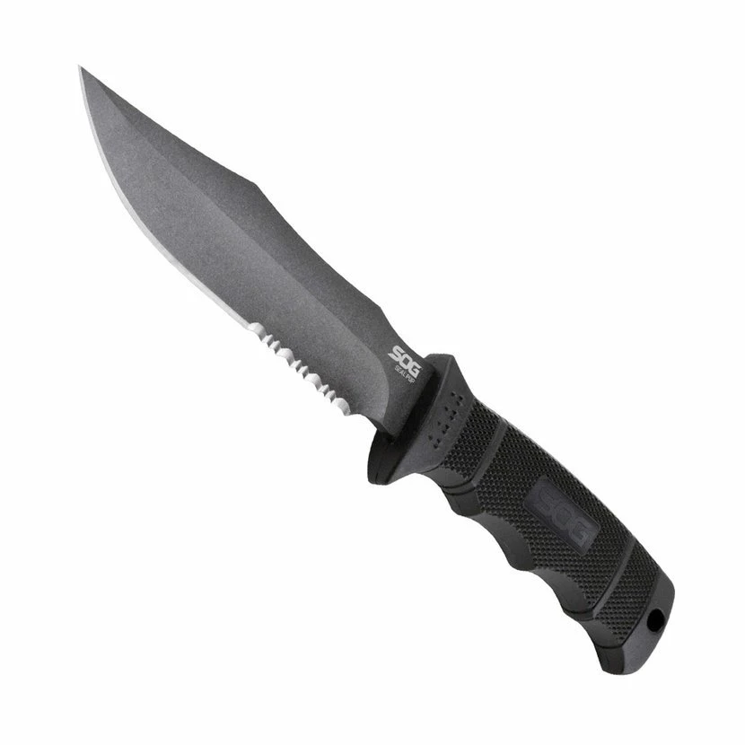 Sog Seal Pup Nylon Sheath – je vyrobený pevný nůž určený pro širokou škálu činností v ozbrojených složkách. Tento nůž splnil vysoké nároky během testů, které byly pro zavedení do výzbroje Navy Seal potřeba. Testovala se schopnost držet ostří, ostrost, odolnost, pevnost proti zlomení špičky, houževnatost.