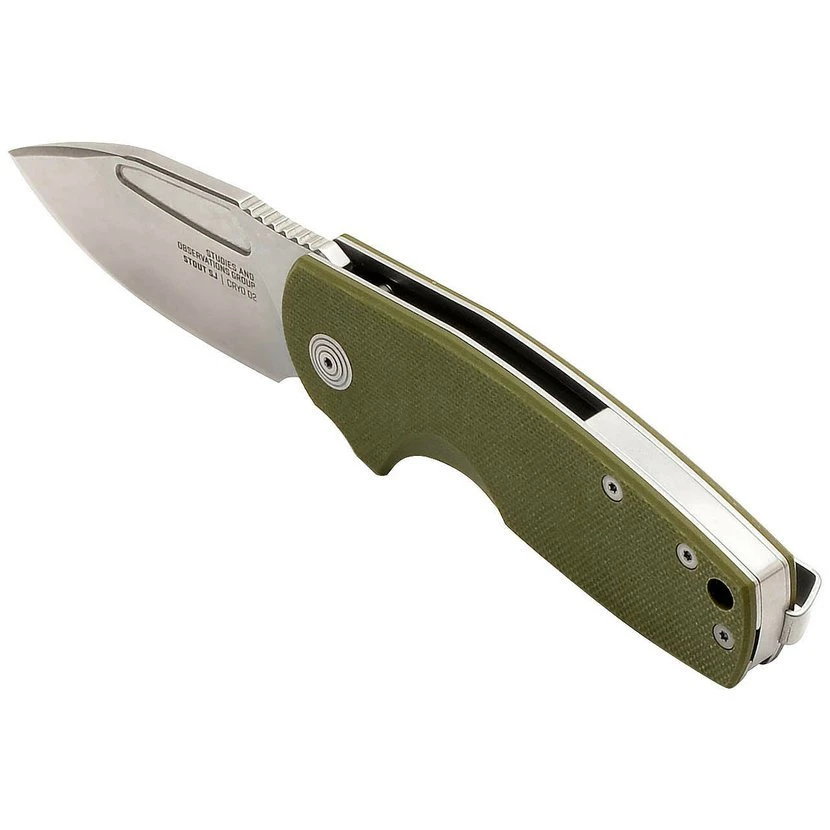 Sog Stout SJ – je malý, EDC zavírací nůž, který je vhodný pro legální nošení ve většině států světa. Proto má krátkou čepel, která neodporuje zákonům a nemá pojistku proti nechtěnému zavření. Slip Spoj je elegantní pojistný mechanismus kluzného kloubu, který drží čepel otevřenou pružinou a po překonání síly pružiny se ručně zavírá.
