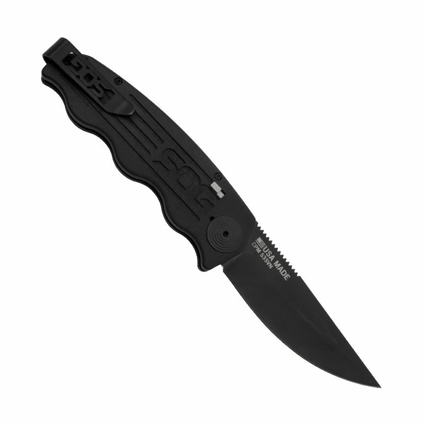 Sog Tac Ops – je taktický kapesní nůž s povrchovou úpravou proti odleskům vhodný pro každodenní nošení do práce, města i přírody na libovolnou běžnou práci, kterou potřebujete udělat, ale primárně je určený pro ozbrojené složky.