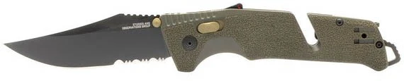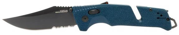 Sog Trident AT Partially Serrated – je záchranářský nůž s kombinovanou čepelí, která si poradí s mnoha materiály všetně syntetických pásů. Část čepele má klasické hladké ostří a část zubaté na syntetické materiály. Tento zavírací nůž je určený pro záchranáře, hasiče, vojáky, policisty a další uživatele, kteří ocení vysokou řeznost, možnost rozbít sklo nebo přeříznout nylonový popruh.