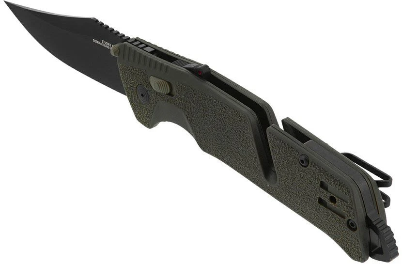 Čepel o délce 95 mm je vyrobena z výborné a odolné nerezové oceli D2, má černou povrchovou úpravou. Má oboustranné otevírání čepele s asistencí.