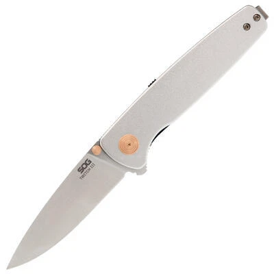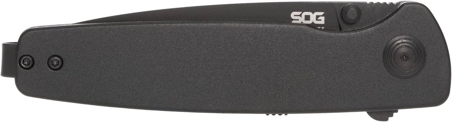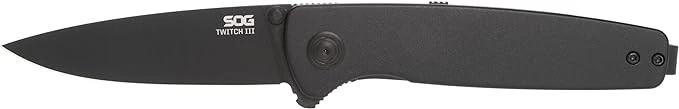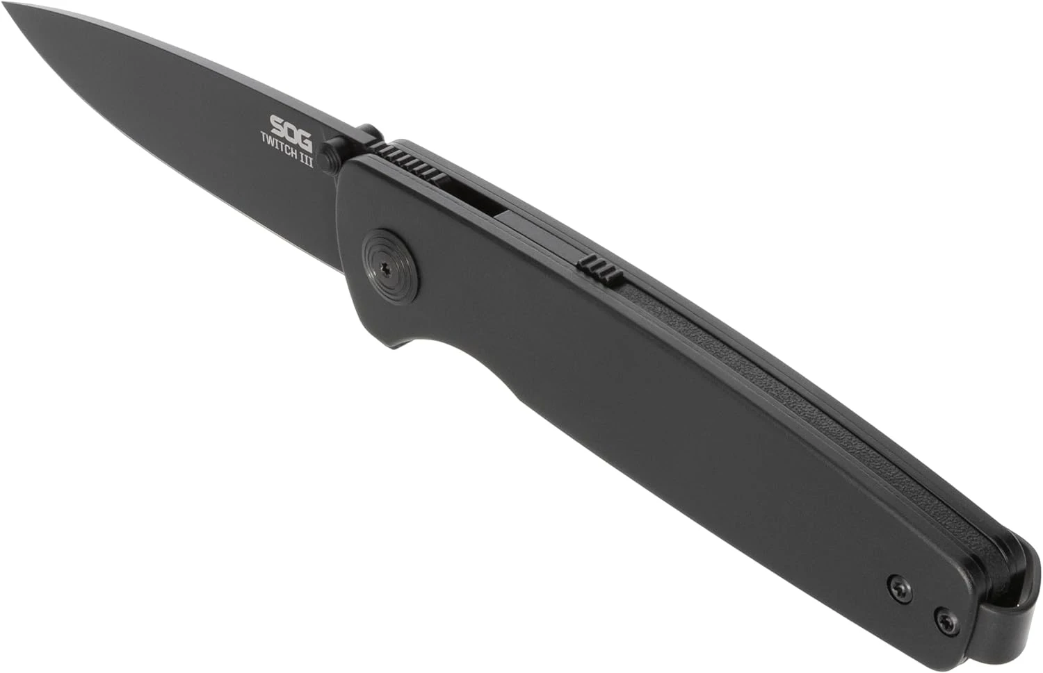 SOG Twitch III/ blackout/blister pack: je to klasický, EDC zavírací nůž, s rukojetí z barveného hliníku. Ideální pro běžné každodenní použití. Tenký, lehký, snadno se otevírá jednou rukou díky technologii asistovaného otevírání SOG. Rychlým přehozením palcových kolíků nebo kapesního klipu je vhodný na oboustranné nošení. Tenké a lehké hliníkové příložky, barevné prvky spony a pivotu dělají nůž jedinečným malým šperkem pánské kapsy. Díky použitému materiálu je nůž extrémně lehký a zároveň pevný. Jistotu v úchopu dělá jemné texturování rukojeti.