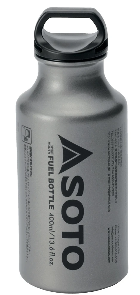 Soto Fuel Bottle 400 ml: palivová lahev pro benzínový vařič SOTO Muka Stove. Je vyrobena z pevného a lehkého hliníku.