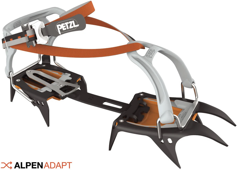 Stoupací železa Petzl Irvis FlexLock – desetihroté mačky s plochými hroty jdou upnout na libovolné turistické boty. Jsou vhodné pro turistiku po ledovci, skialpinismus.