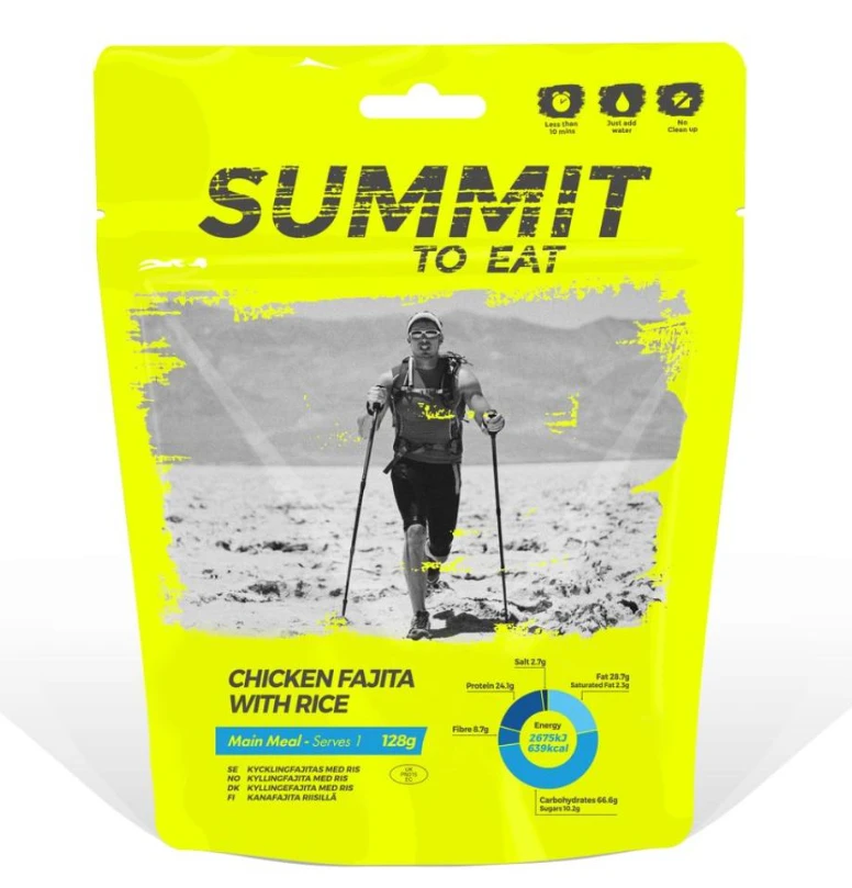 Dehydrovaná strava Summit to Eat Kuře Fajita s rýží: strava vhodná pro přípravu hlavního jídla. Jedná se o vymražené jídlo, které je zbavené vody, ale jejím opětovným přilitím vznikne prakticky stejné jídlo, na jaké jste zvyklí z domova.