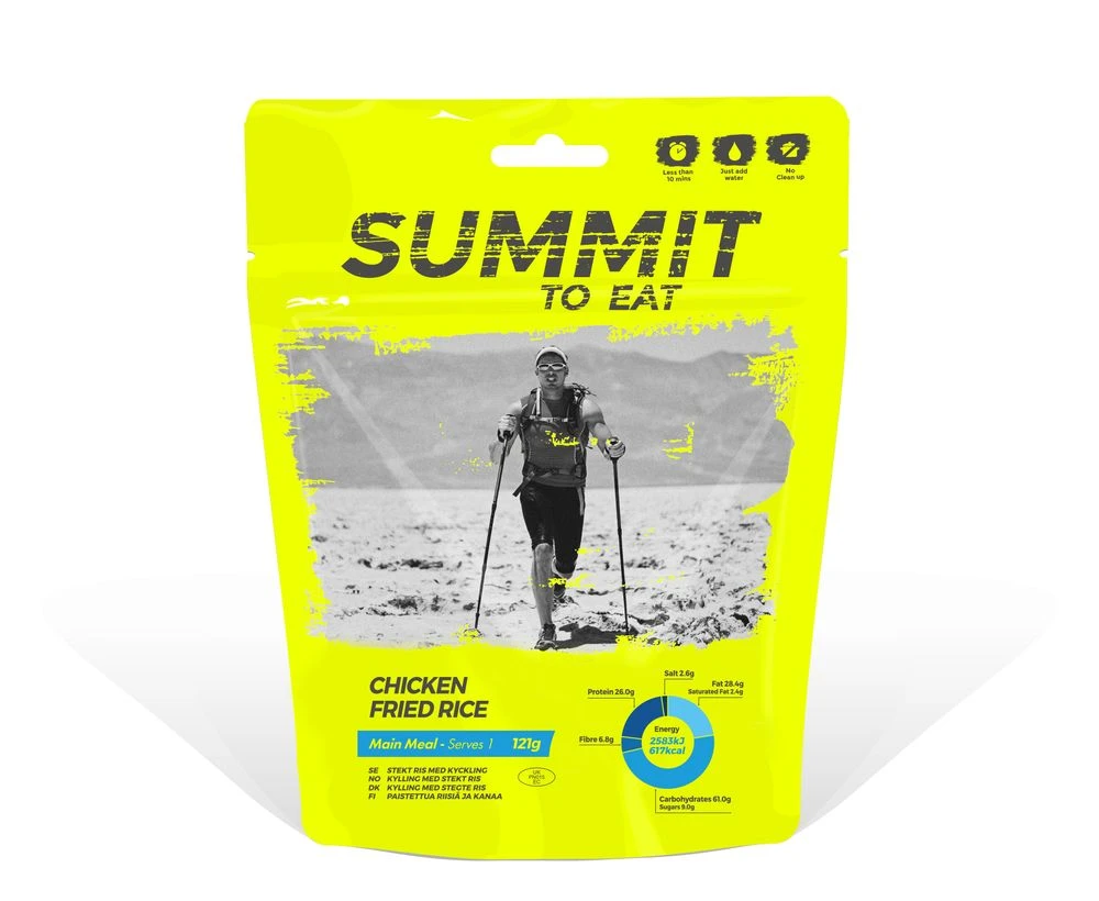 Strava na cesty Summit to Eat Smažená rýže s kuřecím masem a Teriyaki omáčkou: dehydrovaná strava na expedice do velehor vám dodá potřebné živiny při náročných sportovních výkonech. Tento chutný pokrm je jenom hlubokým zmražením zbaven tekutin. Dodáte – li je, získáte plnohodnotný pokrm.