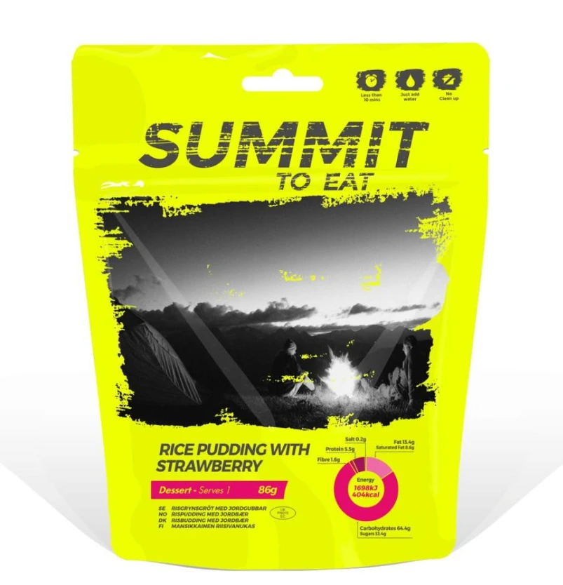 Strava na cesty Summit to Eat Rýžový nákyp s jahodami: vám pomůže dosáhnout maximálních sportovních výkonů. Díky hlubokým zmazením dehydrované stravě budete mít dost času i energie na další dobrodružství. Až pocítíte hlad, stačí trocha horké vody a za pár minut máte uvařené teplé a vydatné jídlo.