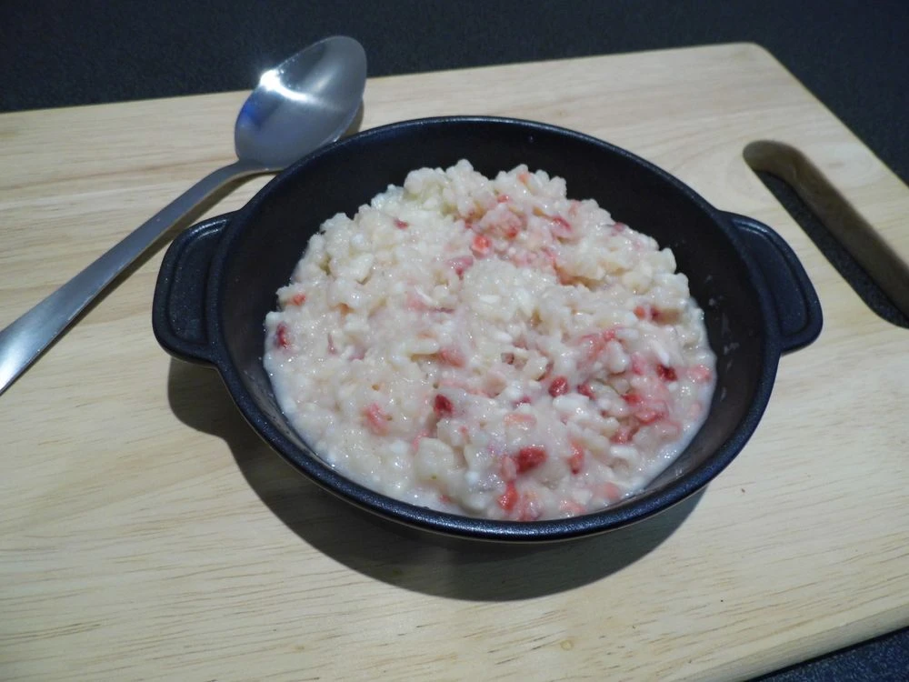 Dlouhozrnná rýže, smetana (mléko), plnotučné mléko, cukr, jahody (3,5%).