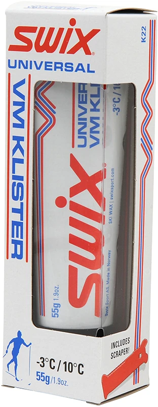 Swix K22 55 g +10°C až -3°C - je klistr pro rychlou pomoc, když vám lyže začnou podkluzovat ve stopě. Je pro teploty sněhu 0 °C — +15 °C a teploty -3°C až +10°C. Je vhodný pro velmi mokrý granulovitý sníh. Snadná aplikace.