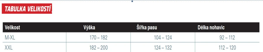Pro 90% arboristů je vhodný M-XL, velikost XXL je pro velmi urostlé arboristy.