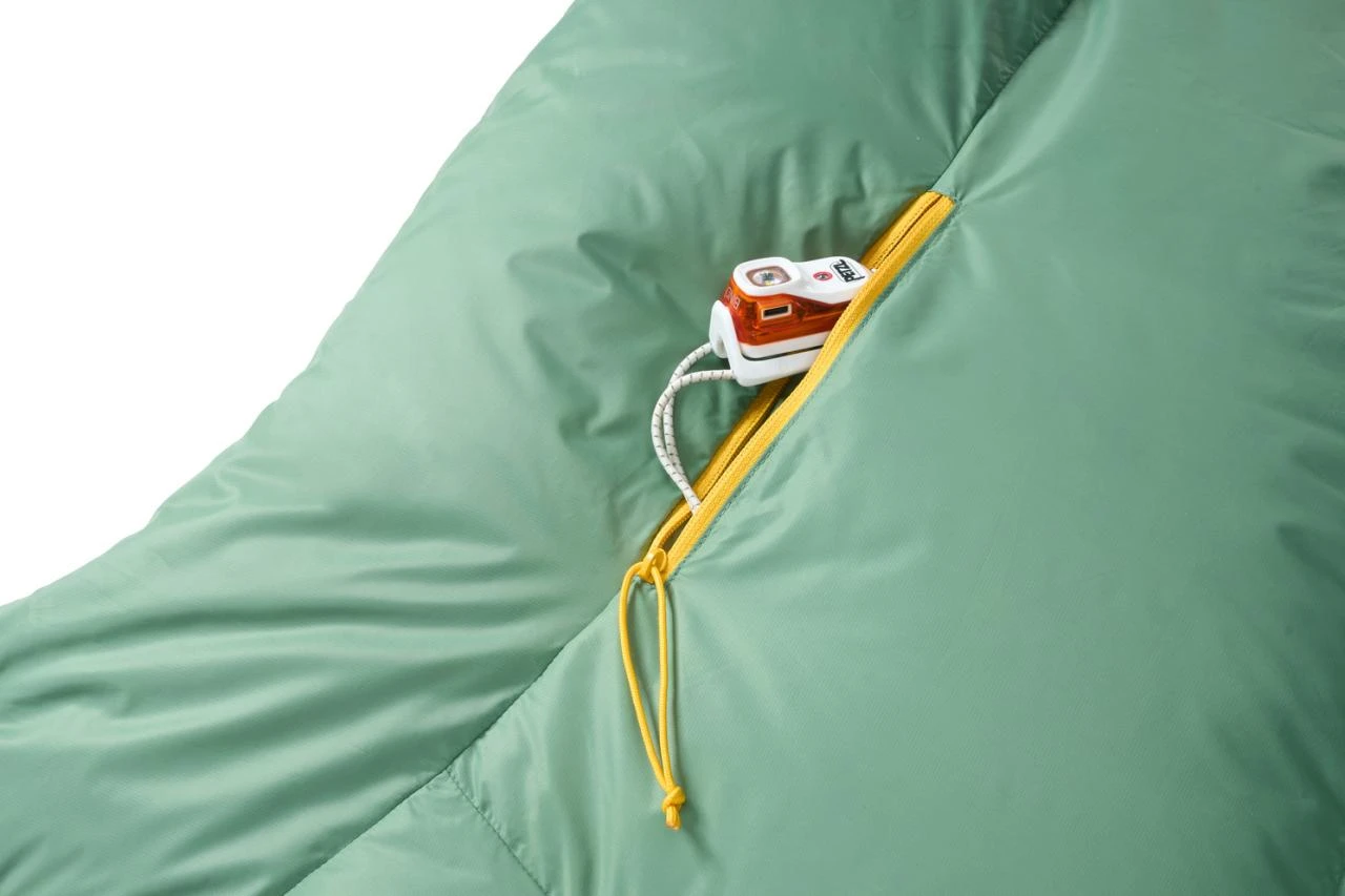 Přesně tvarovaný prostor na nohy lze navléknout přes většinu karimatek pro eliminaci průvanu, nebo jej přetáhnout přímo přes chodidla pro extra teplo.