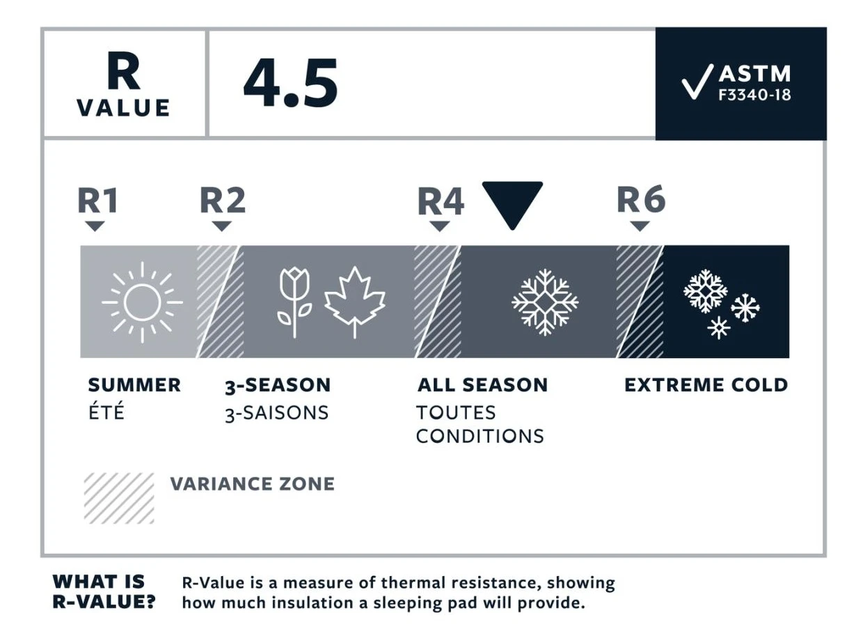 Karimatka má tloušťku 7,6 cm a tepelný koeficient 4,5 R připravený na sezónní spaní pod širým nebem. Strukturovaný povrch karimatky vám poskytne dostatečné pohodlí během celé noci. Je to nejuniverzálnější plně obdélníková ultralehká spací podložka na trhu. Oblíbí si ji také všichni příznivci cestování nalehko, protože má kompaktní rozměry a velice nízkou hmotnost, bez snížení tepelné izolace.