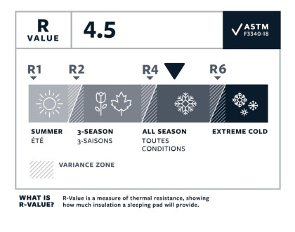 Díky špičkové integraci konstrukční techniky Triangular Core Matrix a technologie ThermaCapture, se zvýšila izolace karimatky a zároveň se snížila její hlučnost oproti předchozím modelům, a to až o 83%. Karimatka má tloušťku 7,6 cm a tepelný koeficient 4,5 R, pro vaše maximální pohodlí při spaní venku.