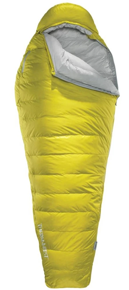 Therm-a-Rest Parsec 32F/0C: Třísezóní péřový spacák ve velikosti Small, Regular nebo v delší verzi Long. Má minimální váhu, kterou ocení všichni příznivci cestování nalehko, a komfortní střih pro maximální pohodlí a odpočinek. Je vyroben ze 100% recyklovaného nylonu, který je velmi příjemný na dotek. Uvnitř najdete výplň z kvalitního husího peří s vysokou plnivostí 800 cuin. Tvar mumie poskytuje teplotní i prostorový komfort (dost prostoru na otáčení).