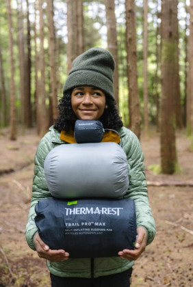 Therm-A-Rest Trail Pro Max Regular Wide: obdélníková samonafukovací karimatka rozšířená na 64 cm a prodloužená na 196 cm, poskytne dostatek prostoru pro pohodlné spaní. Je silná 7,6 cm pro co nejvyšší komfort při spaní, navíc je ještě rozšířena na 65 cm, aby vám dala co nejvíce prostoru. Je to velice komfortní samonafukovací karimatka s ohledem na pohodlí spaní i s ohledem na tepelný komfort. Nabízí vynikající poměr tepla a hmotnosti, Váha je 1160 g.