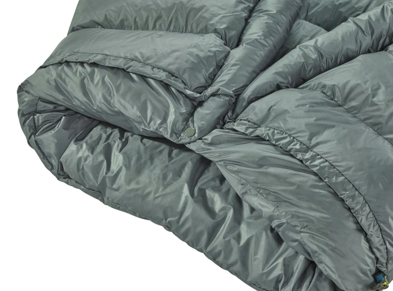 Konstrukce deky poskytuje prostor pro otáčení a zároveň i dostatečné teplo. Uvnitř najdete výplň z integrovaného kvalitního husího peří s plnivostí 900 cuin. Vnější materiálem má voděodolnou úpravu DWR, která ochraňuje výplň před vlhkostí. Vyrábí se ve dvou velikostech. Součástí balení je také skladovací a kompresní obal.