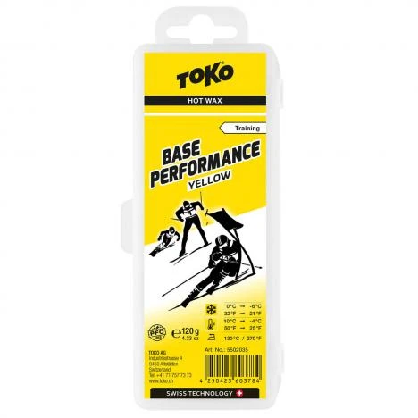 Skluzový vosk na lyže Toko Base Performance yellow 0°/-6° 120 g - nejčastěji používaný „turistický“ skluzový vosk, který se hodí pro teploty 0 až –6°C. Je vhodný pro pro sjezdové lyže, snowboardy, běžky. Po navoskování lyží se zlepšuje jejich skluz díky tomu je u sjezdových lyží snadněji dělat oblouky. V případě běžeckých lyží usnadňuje vosk klouzání.