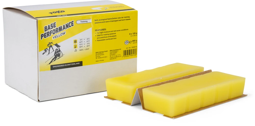 Toko Base Performance yellow 0°/-6° 960 g - je velké balení lyžařských vosků, které se hodí pro lyžařské kluby, půjčovny a školy.