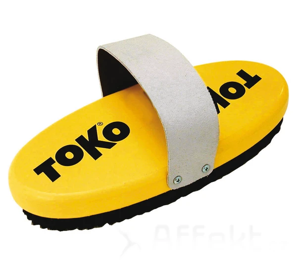 Lyžařský kartáč na skluznici Toko Base Brush oval Horsehair with strap 4110–00840–9999 – žíněný kartáč určený na vykartáčování a vyleštění lyžařského vosku na skluznici. Tento kartáč je určen hlavně pro závodníky, kteří používají vosk Toko Jetstream.