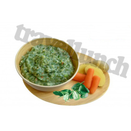 Travellunch Bramborová kaše se špenátem Double: je lehké, plnohodnotné, výživné a velmi chutné jídlo se snadnou a rychlou přípravou.