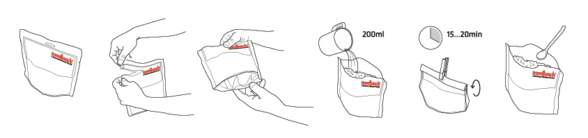 Návod na přípravu: do balení vlijeme vroucí vodu, promícháme, uzavřeme obal a necháme 10–15 minut odstát. Poté můžeme podávat.