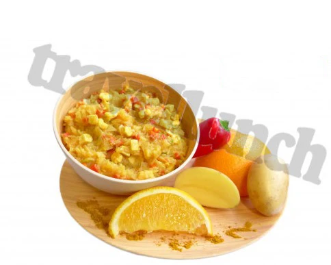 Travellunch Karibské brambory na kari s kuřetem a krevetami Double: je lehké, plnohodnotné, výživné a velmi chutné jídlo se snadnou a rychlou přípravou. Netypická kombinace chutí pomeranče, kuřete a krevet s bramborami na kari pro milovníky exotických jídel.