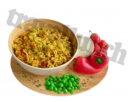 Travellunch Paella bez laktózy Double: bez laktózová varianta klasického španělského jídla s kousky kuřete, ryb a opravdovými krevetami.