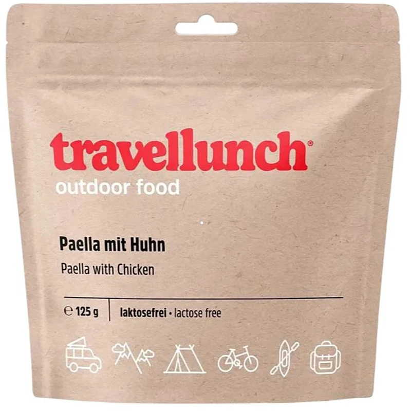 Travellunch Paella bez laktózy Single: je lehké, plnohodnotné, výživné a velmi chutné jídlo se snadnou a rychlou přípravou. Je to rýže s masem z kuřete, s rybou a krevetami.