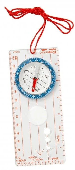 Trekmates Explorer kompas : turistická buzola s kompasem je nezbytnou pomůckou na vašich cestách ve volné přírodě nebo horách. Společně s mapou vám pomůžou najít správnou cestu a zorientovat se v terénu. Na základně buzoly najdete otočné kolečko kompasu s luminiscenčními body označujícími světové strany: sever - N (North), jih - S (South), východ - E (East) a západ - W (West) a poledníkové linie. Tyto svítivé body využijete především při používání kompasu v šeru a ve tmě. Vyvážená kovová střelka kompasu v kapalinové kapsli (červená šipka) ukazuje na severní magnetický pól Země.