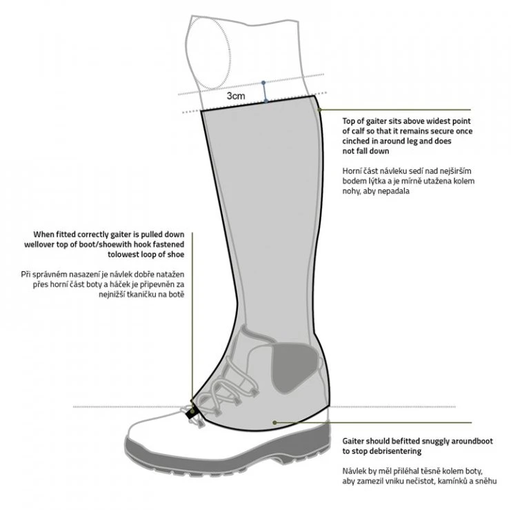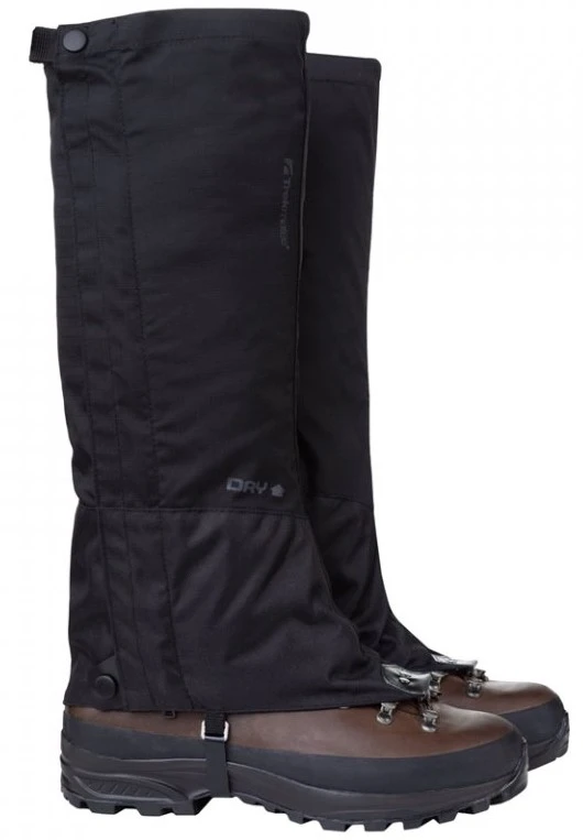 TrekMates Lomond DRY: voděodolné návleky s membránou DRY (prodyšná membrána od firmy Hipora, která vyniká výbornou odolností proti vodě a přitom si zachovává dobrou prodyšnost). Návleky jsou lehké a prodyšné, ochrání boty i kalhoty před vodou, sněhem i blátem. Zapínání je na straně a zip je krytý légou se suchým zipem. Pevný pásek pod botu.
