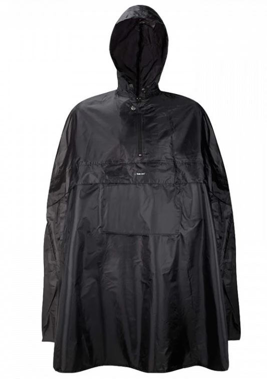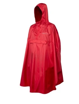 TrekMates Rove Poncho : Nepromokavé lehké pončo od firmy TrekMates. Pončo si oblečete jednoduše pře hlavu, a místo rukávů zde najdete otvory pro ruce, které jsou chráněny suchým zipem. Na přední straně ponča najdete kapsu, která se zapíná na malý patent. Pončo má nově půlkruhový spodní díl, takže nejsou potřeba průchody pro ruce a do kapsy i k zapnutí u krku se pohodlně dostanete.