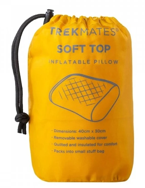 Trekmates Soft Top: lehký nafukovací polštářek vhodný na cestování. Vnější strečový potah je velmi příjemný a pohodlný. Uvnitř měchýř z TPU s vnitřními přepážkami pro tvarování. Polštářek je dodáván v přepravním obalu.
